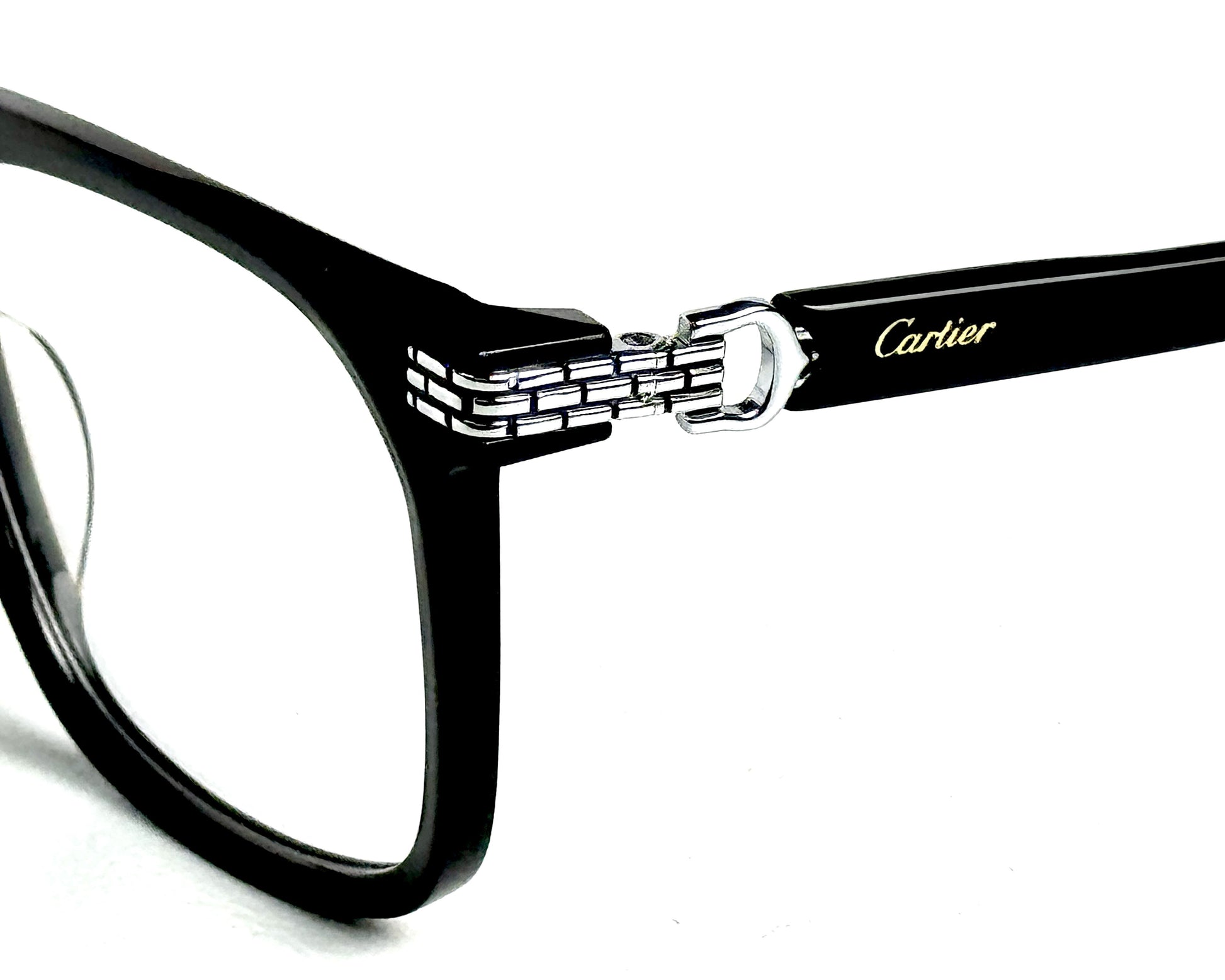 The CARTIER 120584 features a gloss black front and silver accents on its temples. The bold design keeps the frame elegant and classy.