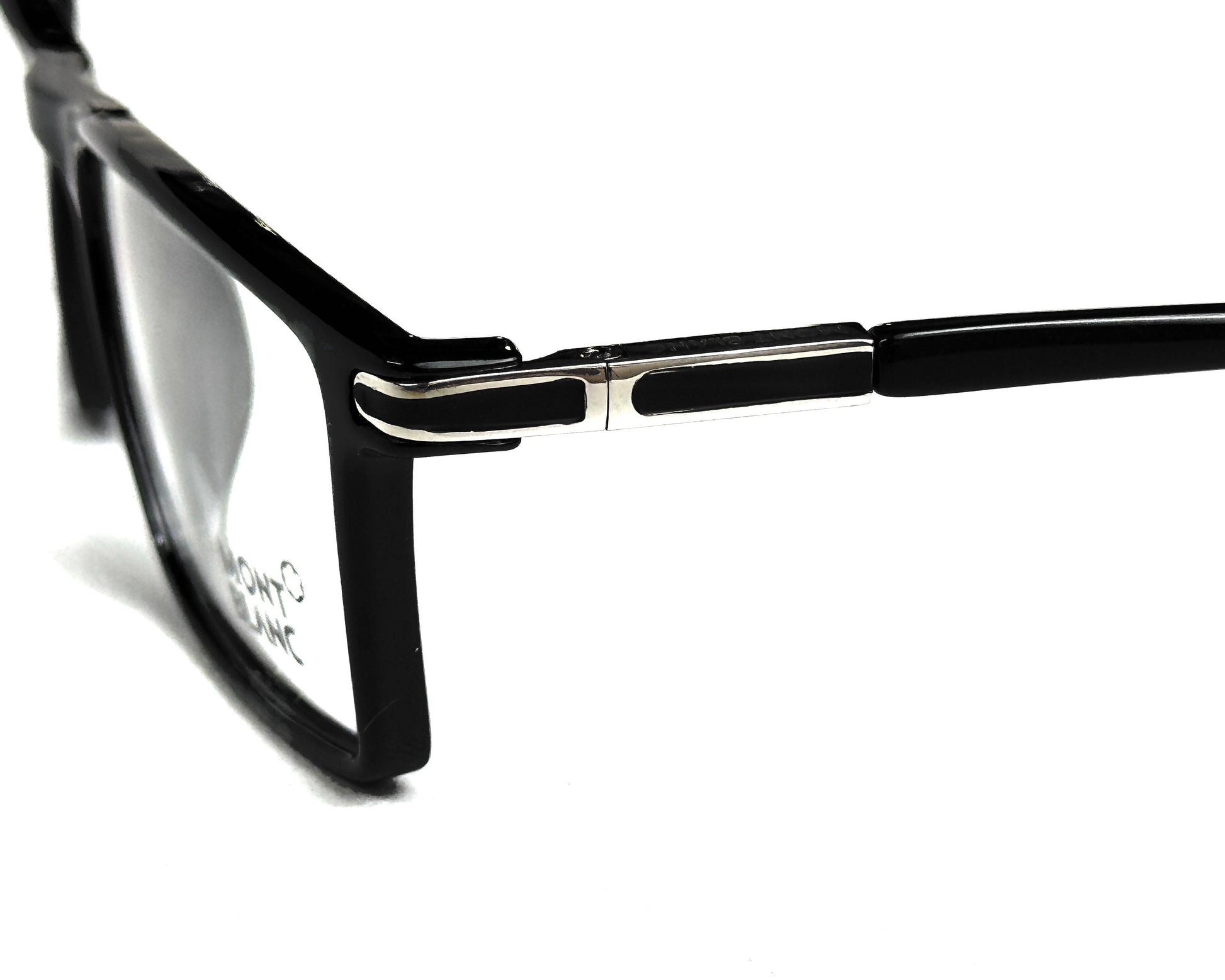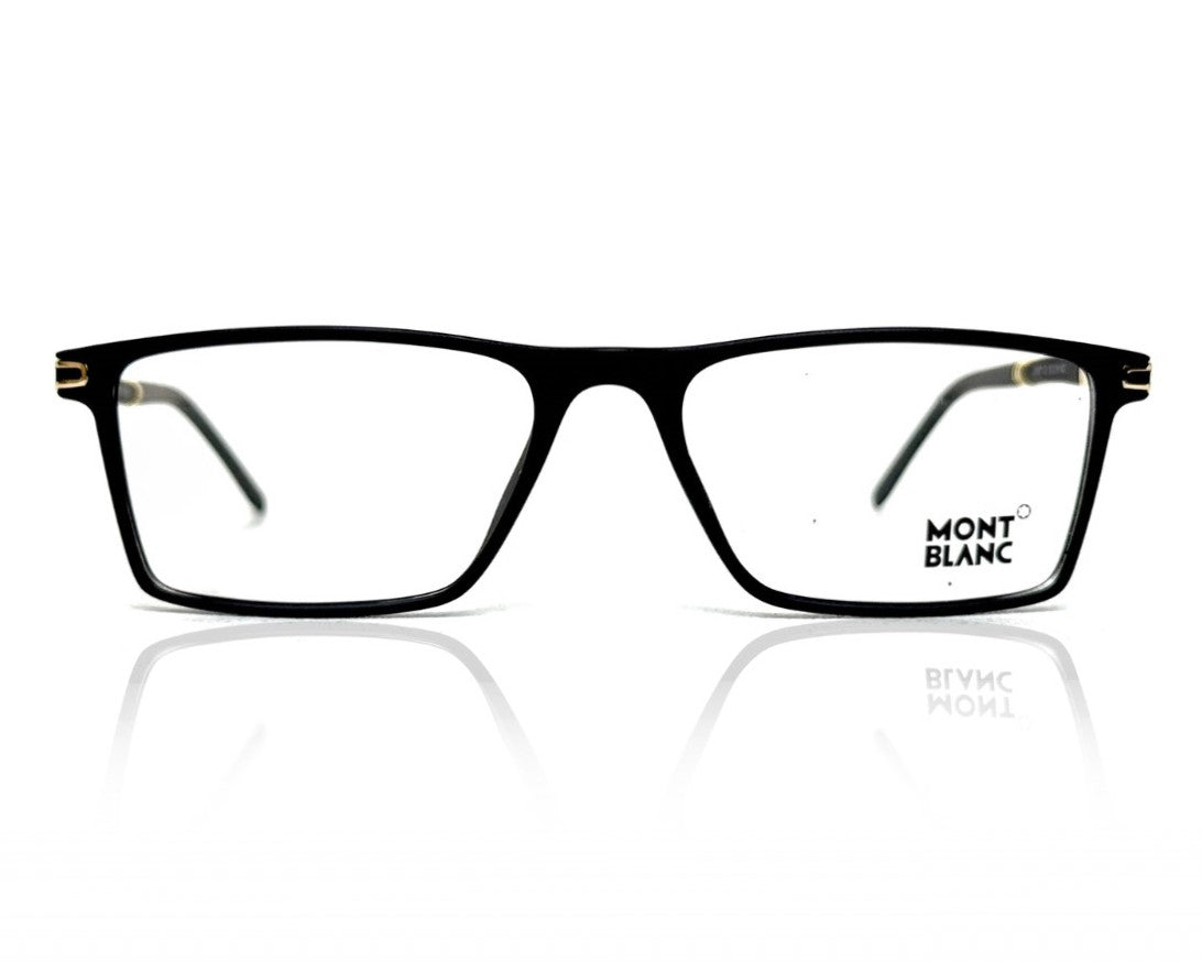 The MONT BLANC 2007 Gloss Black features a minimalistic design with golden accents throughout the frame.