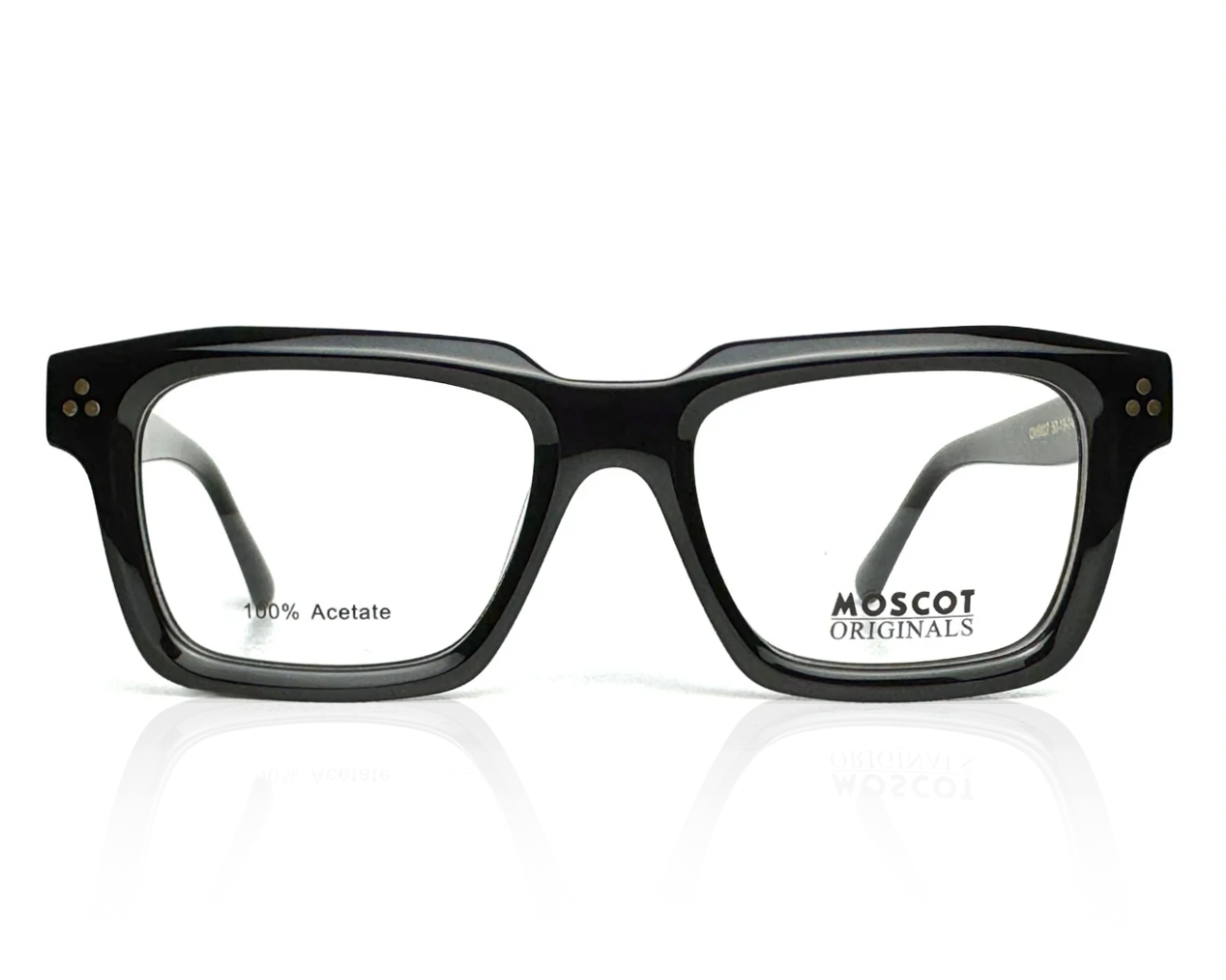 The MOSCOT QM8827 showcases a striking design, with its thick acetate frame providing a distinctive appearance for the wearer.
