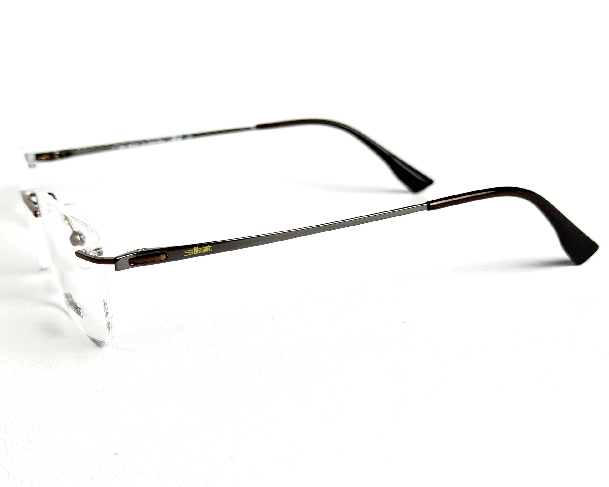 The Silhouette 20512 Silver Rimless offers a tailored rimless style. Its refined combination of golden temples and a black front lends a sophisticated and timeless look.
