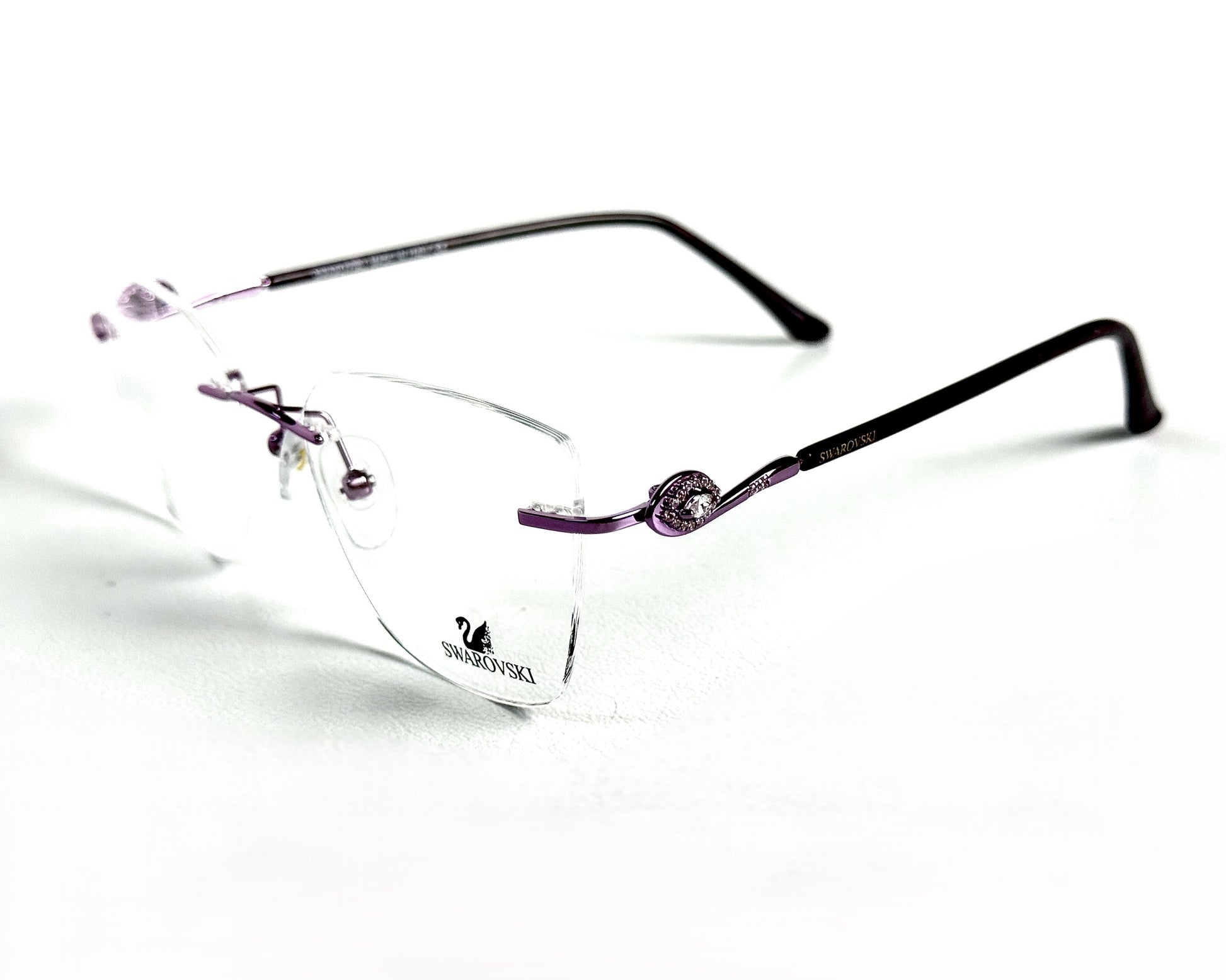 The Swarovski 120461 features a unique rimless design. The frame features a purple front and complimenting sides.