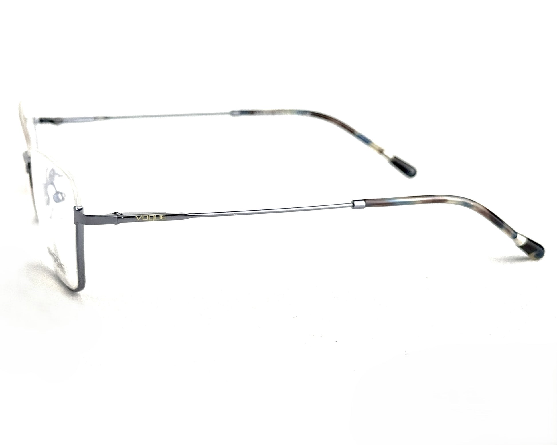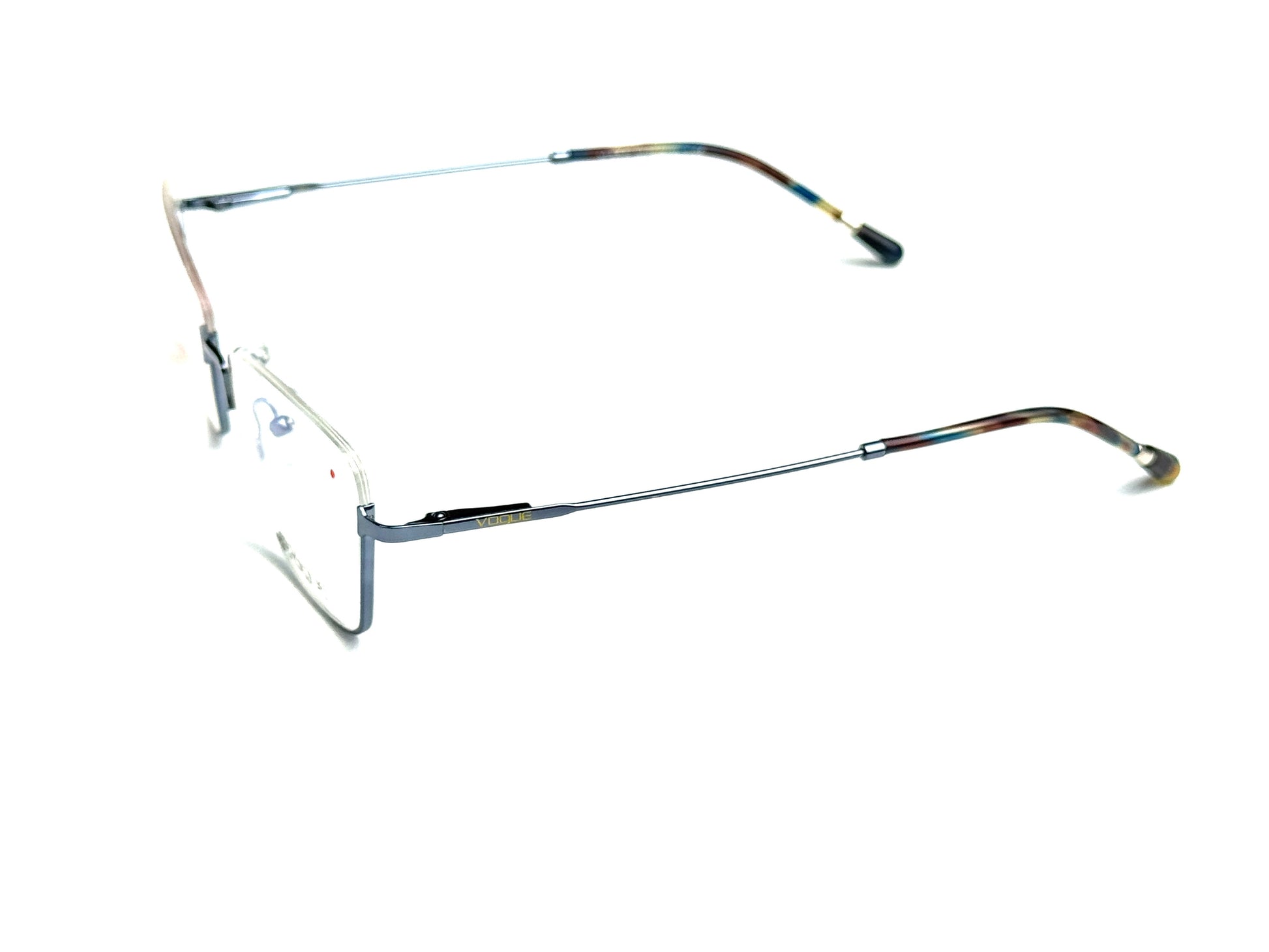 VOGUE - 10436 - Half Rim features a unique metallic design. The thin built combined with a mix blue and silver gives the frame a sleek and sharp look.